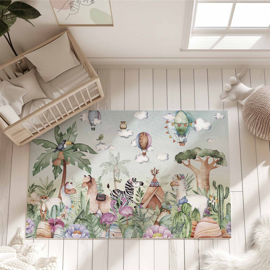 Jungle Animals Kids Playroom Rug