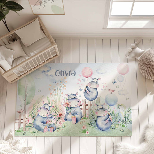 Hippo Family Nursery Rug