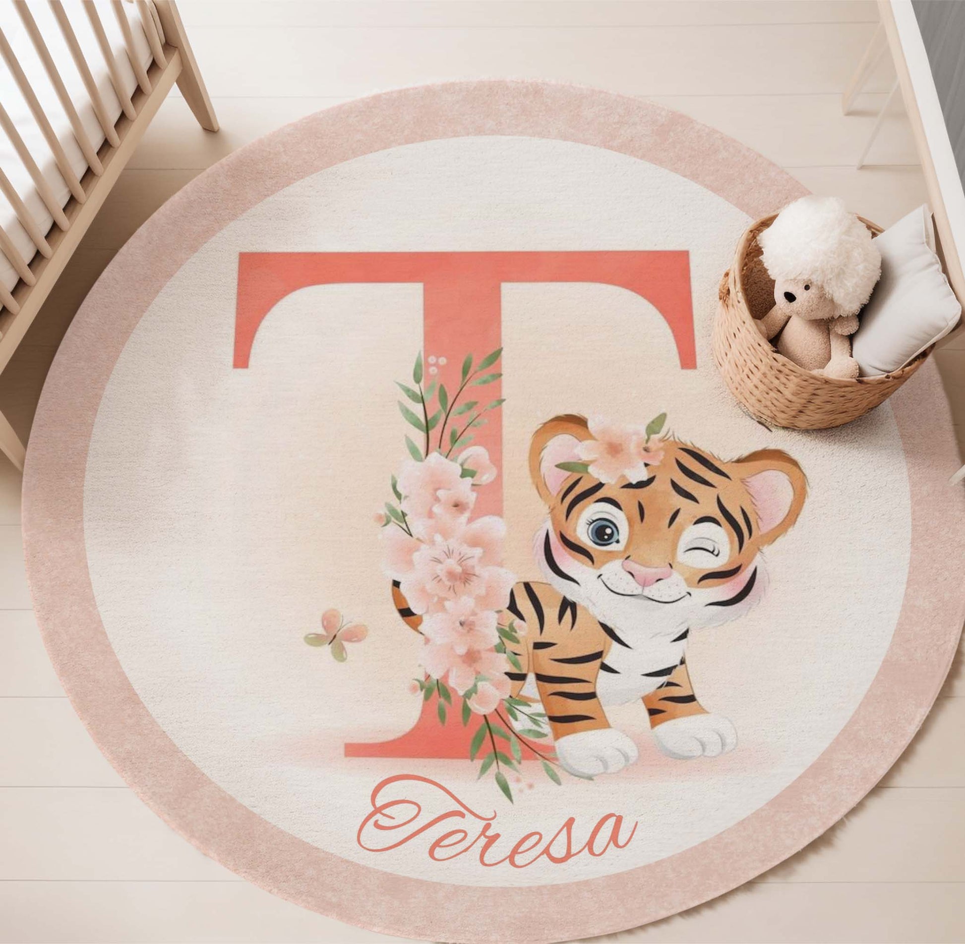 Baby Tiger Alphabet Round Rug